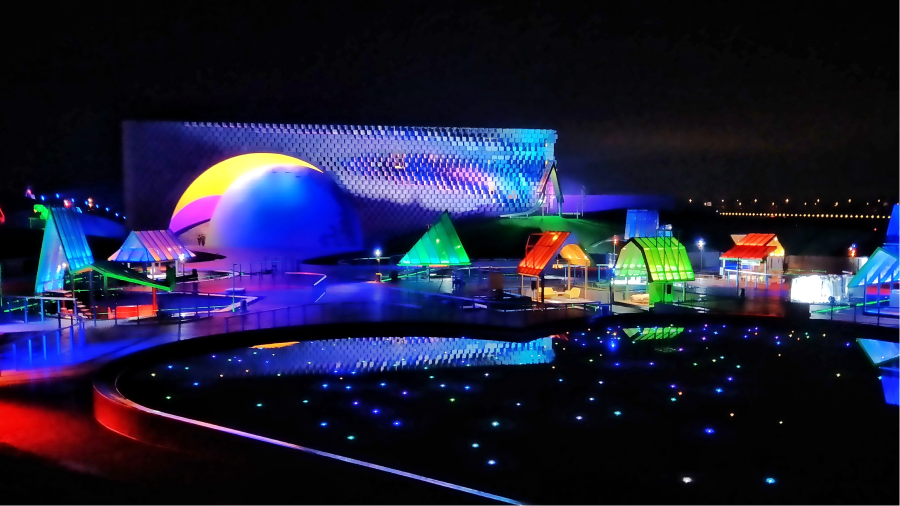 由著名導演王潮歌總構想、總編劇、總導演的《只有愛·戲劇幻城》,引領荷蘭花海核心區(qū)全面升級,建設一個將花卉、創(chuàng)意、愛情等主題創(chuàng)新融合的沉浸式全景演繹戲劇幻城?!吨挥袗邸騽』贸恰窂摹皯騽?”的總體構想出發(fā),將愛情與花海巧妙融合,觀眾觀賞戲劇的同時,也不自覺地成為了戲劇的一部分。《只有愛·戲劇幻城》突破了王潮歌過往創(chuàng)作的邊界,首次推出如月、如心、如花、如歌、如故、如意六大主題劇場,觀影空間將燈光與氛圍、音樂與劇情、表演與景觀完美結合,通過聲、光、電舞臺機械等技術手段,形成多維度的戲劇空間,打破觀眾已有的視覺經(jīng)驗和戲劇體驗;劇場邊近百個炫彩景觀小品屋與劇場相呼應,為游客呈現(xiàn)精彩的愛情戲劇。